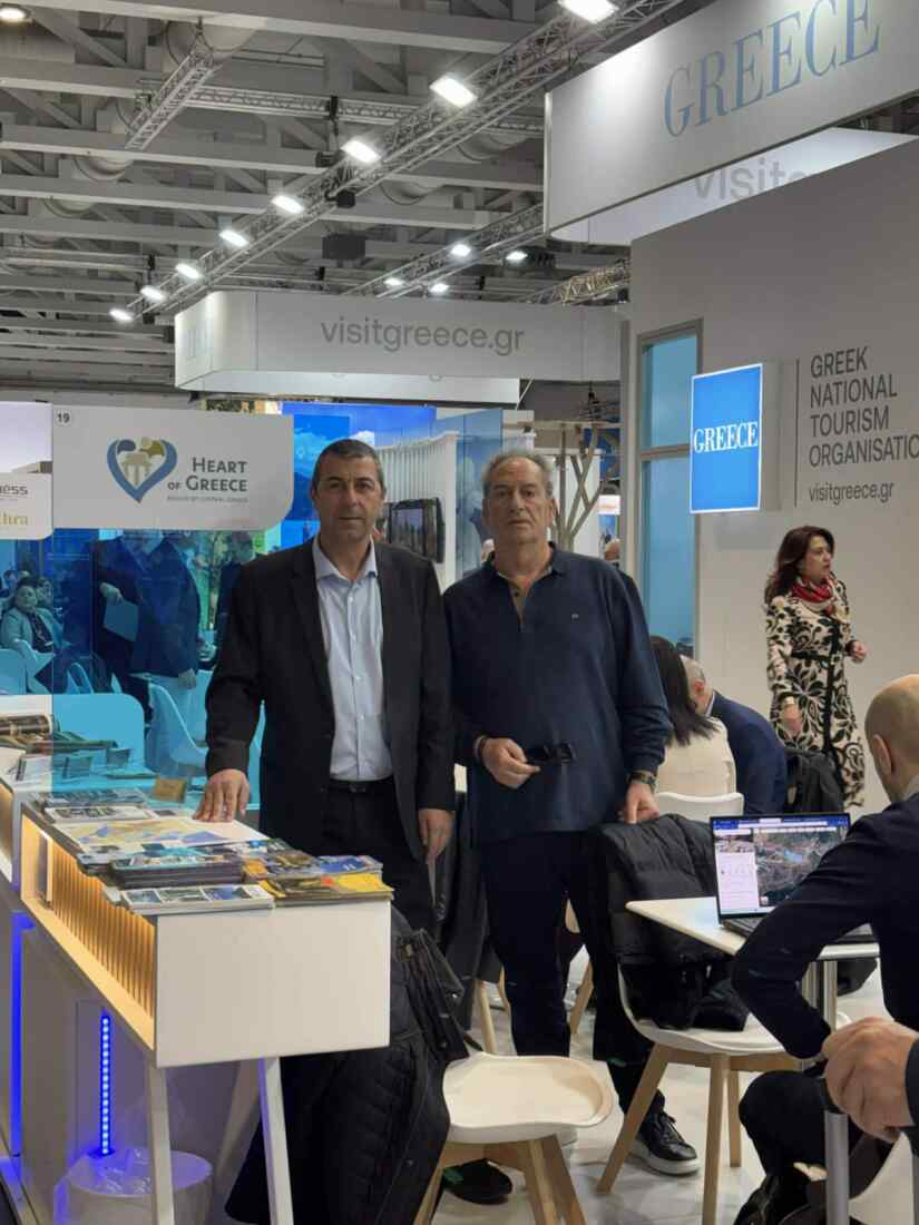 Το Επιμελητήριο Εύβοιας στην «ITB BERLIN 2026» εκπροσώπησαν ο Πρόεδρος του Τμήματος Υπηρεσιών κ. Δημήτρης Σεπετής και το Μέλος του ΔΣ και Διευθύνων Σύμβουλος της ΑΝ.ΔΙΑ Στερεάς Ελλάδας και Θεσσαλίας κ. Διονύσης Σπανός, με σκοπό την προβολή του τουριστικού προϊόντος της Εύβοιας και της Σκύρου και όλων των εναλλακτικών μορφών του.